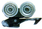 四轮推钩是牵引链条中给积放承载车组传递动力的重要部件,它是由双铰接链连接起来,其间距为206的整数倍。推钩架用高强度优质合金钢模锻成形,并经过热处理提高其耐磨性能。